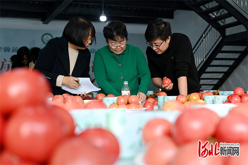 11月3日,在北京新发地衡水(冀州)农副产品才智物流中心举行的高质量西红柿大赛上,专家评委正在对来自全省各地的西红柿进行打分。 河北日报记者 焦磊摄